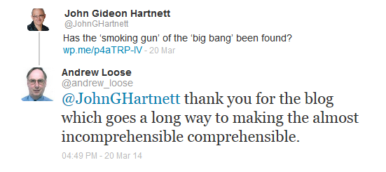 “Astronomers Just Detected the Beginning of the Big Bang”, “Big Bang’s Smoking Gun Found”, “Astronomers Discover First Direct Proof of the Big Bang Expansion” and “Major Discovery: ‘Smoking Gun’ for Universe’s Incredible Big Bang Expansion Found” were some of the headlines on Monday 17 March 2014 around the web-based news media.