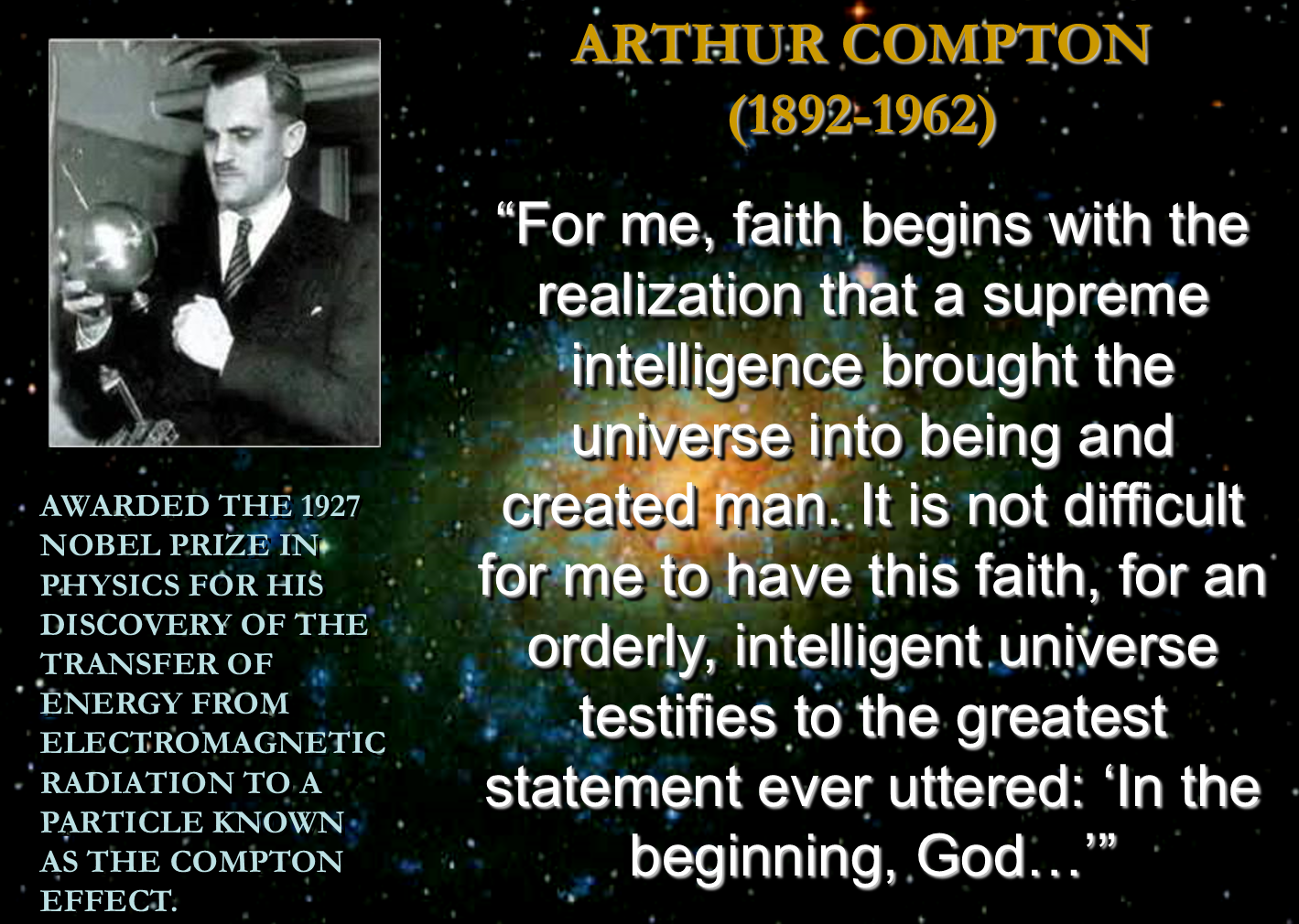 Arthur Compton, a Christian (Baptist) held to a supernatural Creation by God (Genesis 1:1). He had faith in the supreme Creator God.