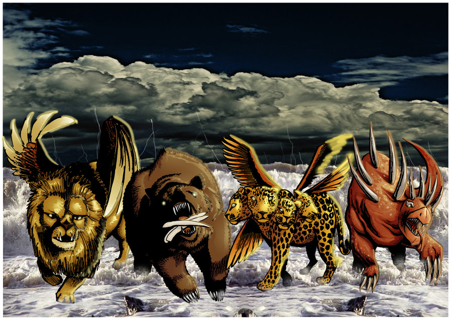 Daniel 7:2, 3 Daniel spake and said, I saw in my vision by night, and, behold, the four winds of the heaven strove upon the great sea. 3 And four great beasts came up from the sea, diverse one from another.