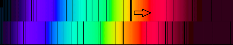 Spectral lines when shifted toward the red end are said to be redshifted. Credit: Wikipedia