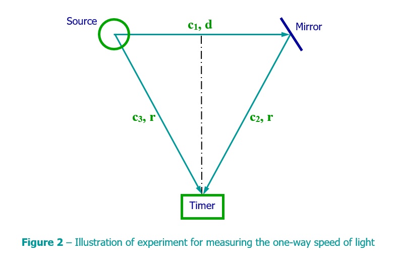 Many months ago I received a paper wherein the authors attempted to show that the one-way speed of light could be measured by an experiment sending a light signal around a ring bouncing it off a few mirrors. (See the figure to the right) But any such experimenter who thinks it does that assumes the conclusion (begs the question) by not properly understanding the physics and the underlying assumptions of such an experiment. There are components (relative to the Source measured at the Timer) of outbound and inbound light vectors that must be considered. So no such experiment is ever only one way, it is always two-way, and as such it can never measure the one-way speed of light. (Besides the ASC is a convention, it is not something that can be refuted. We use a convention to define the basis under which we make a measurement, not the reverse.)