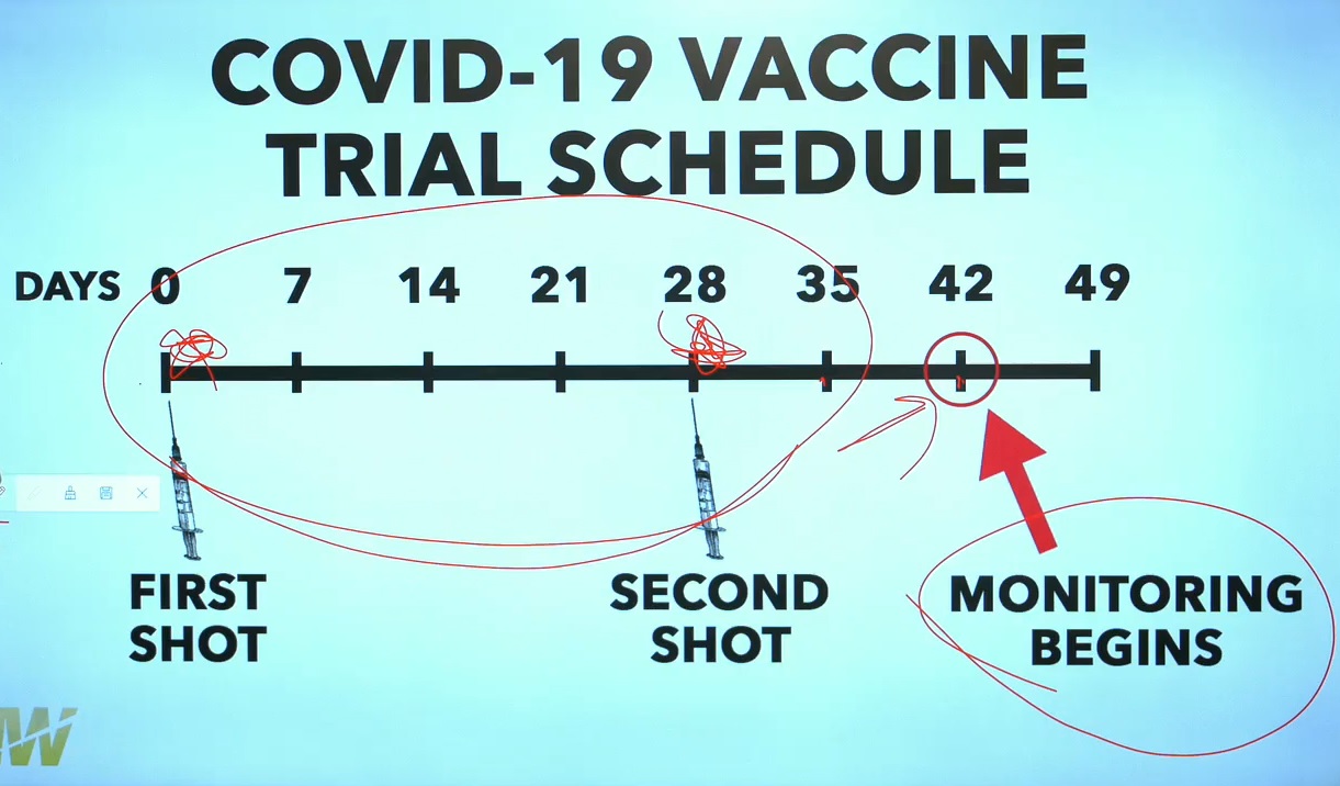 As it turns out the scientists did not look for any COVID19 symptoms until 14 days after the second injection, or 42 days after the first injection. The vaccine requires two shots 28 days apart. So all the initial symptoms that many experienced after getting their shots were ignored and only those who developed symptoms 14 days after the second shot were considered.