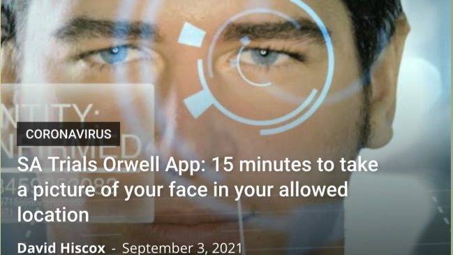 The state of South Australia is trialing a new surveillance tool. South Aussies are required to download an app on their smartphones, which all need to have with GPS switched on. The app randomly requires that they send a photo of their face — with facial recognition software of course — which tells the governing overloads where the person is at that time. If they are not at home the gestapo is sent around to their house; probably to take them into custody. Well, whenever they find them anyway.