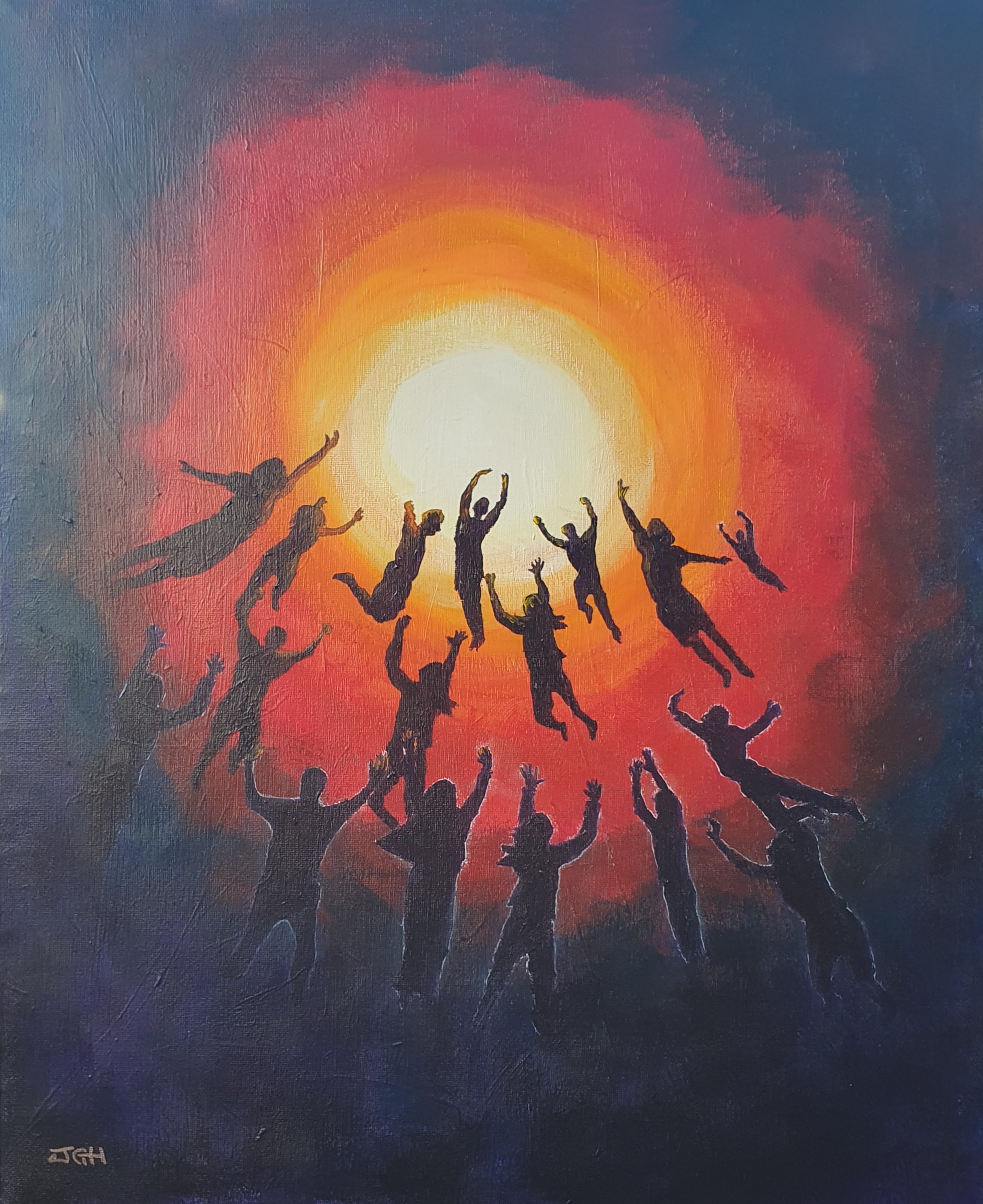 God resurrects the believers into new life with new resurrection bodies. God calls them to come up to heaven in a cloud, not meaning a rain cloud but as a cloud of witnesses, and with angels. This is at the Day of the Lord, the final judgment of man. (Revelation 20:11-15)