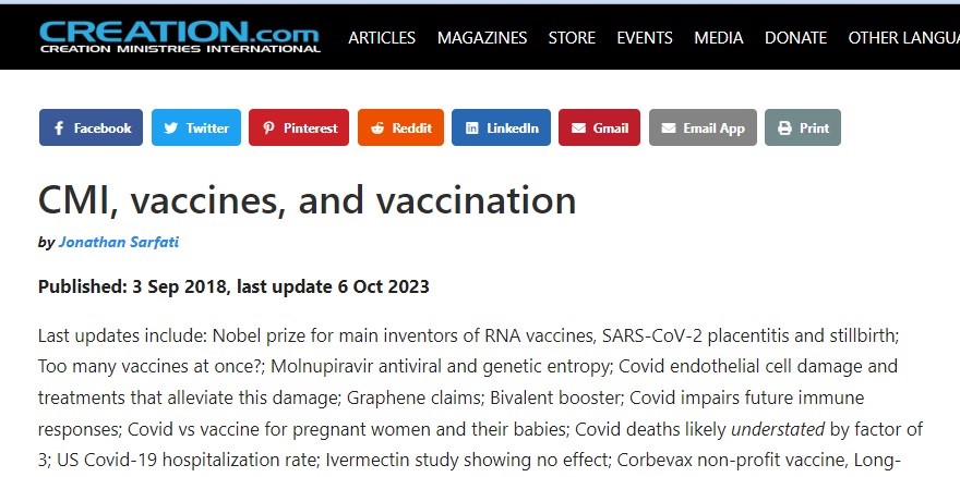 CMI has recently (27 June 2023 and again 8 October 2023) updated their position statement on vaccines. It is called “CMI, vaccines, and vaccination” authored by Jonathan Sarfati.