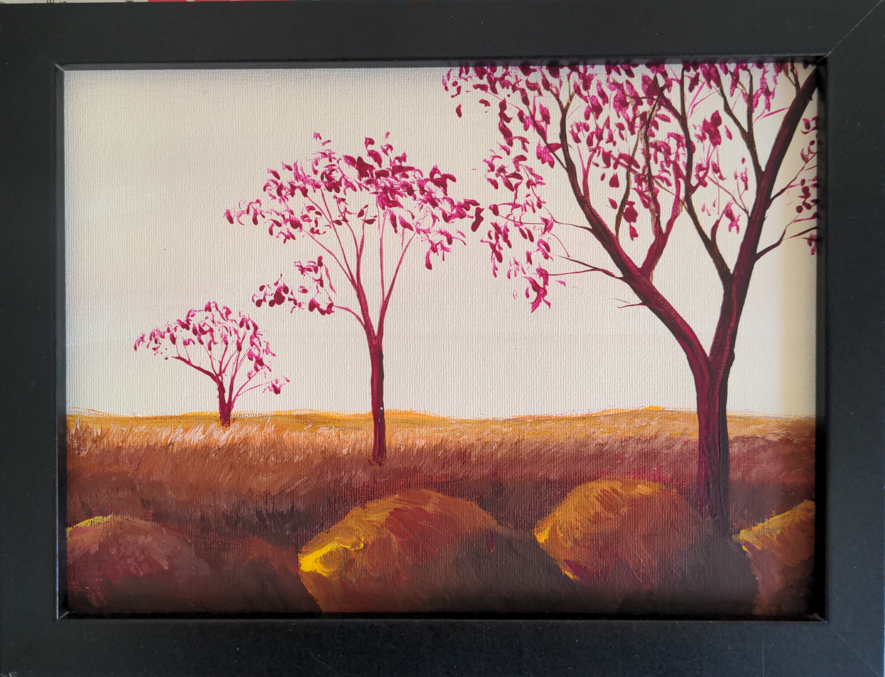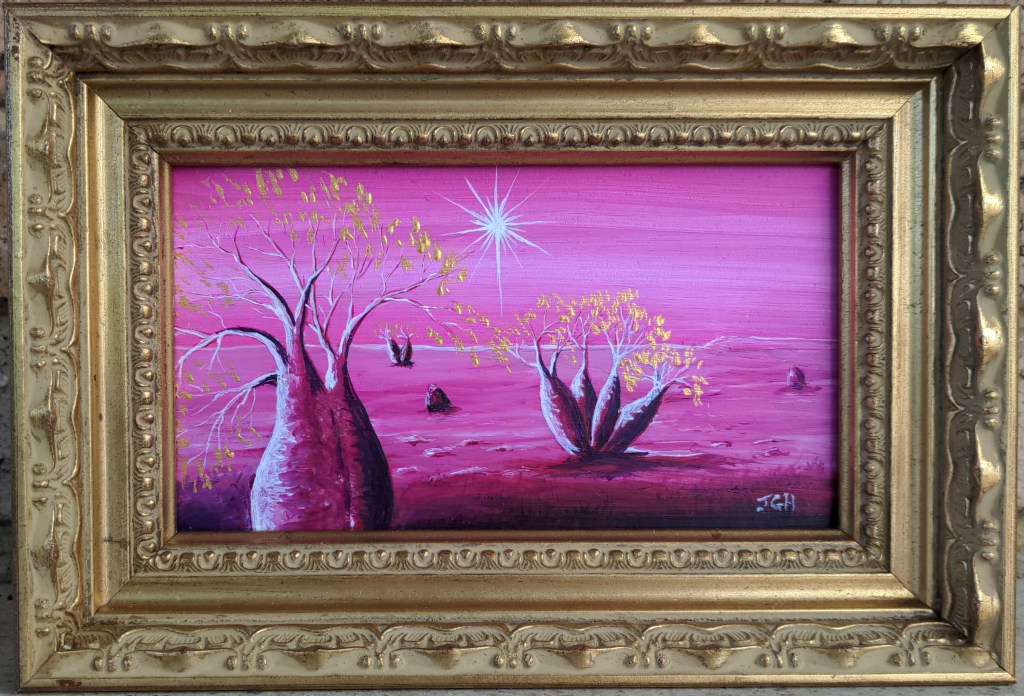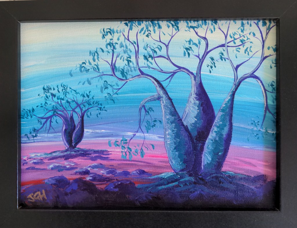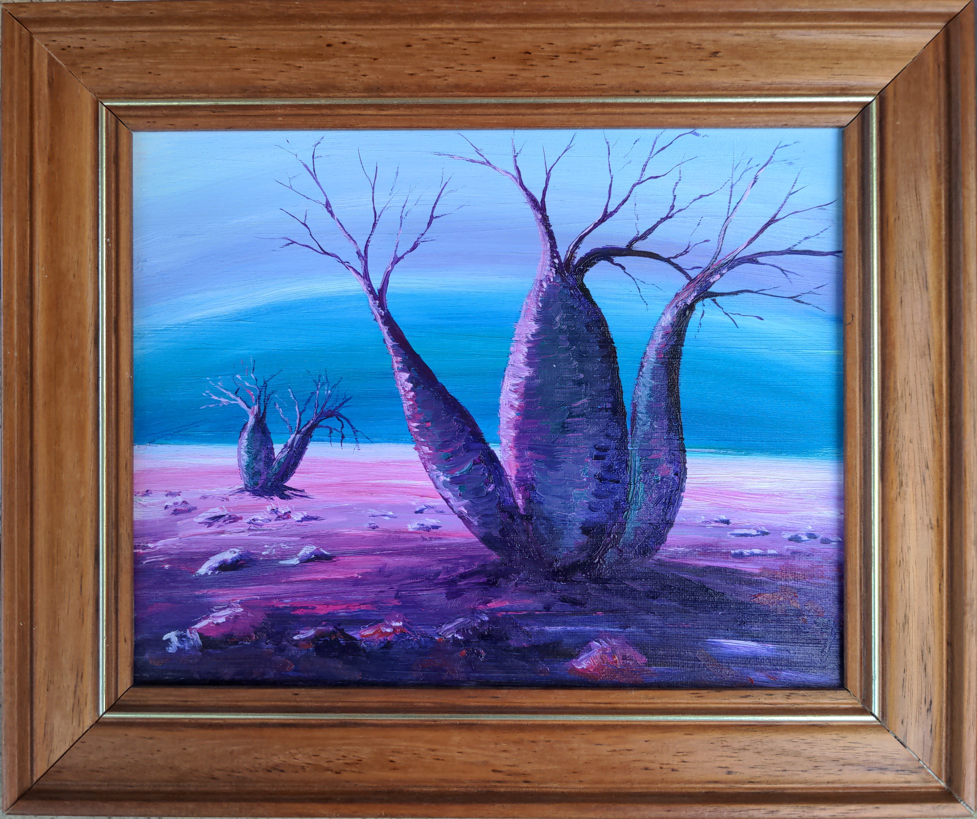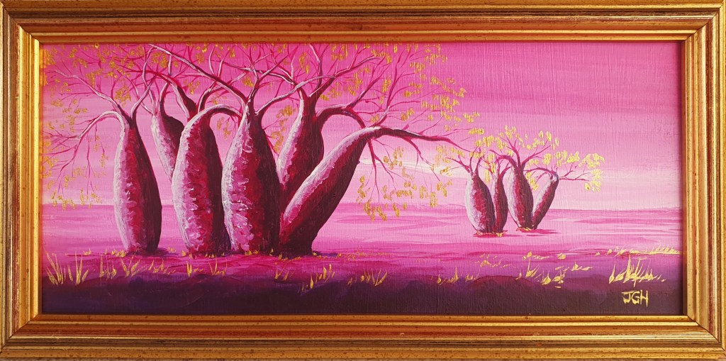 SOLD: Kent St Weir, Canning River Park, 30 cm x 26 cm, oil on board, 2024.SOLD: Settlers’ Common Armadale (Bedforddale), 30 cm x 20 cm, oil on board, 2024.SOLD: Bickley Brook confluence with Canning River, Gosnells, 30 cm x 20 cm, oil on board, 2024.FOR SALE: John Oakey Davis Park 1, Gosnells, 20 cm x 30 cm, oil on board, 2024, framed, $70.SOLD: Hi-liner Hen, 20 cm x 20 cm, oil on board, 2024.NOT FOR SALE: Settlers’ Common Armadale 3, 20 cm x 30 cm, oil on board, 2024.SOLD: Settlers’ Common Armadale 2, 20 cm x 30 cm, mixed media (oil/acrylic) on board, 2024.SOLD: Mob of Kangaroos, 20 cm x 12 cm, acrylic on board, 2024.SOLD: Mob of Roos, 30 cm x 12 cm, acrylic on board, 2024.SOLD: Cataract Surgery, 50 cm x 40 cm, mixed media (oil/acrylic) on canvas, 2024.FOR SALE: Sunburnt Country, 40 cm x 30 cm, acrylic on canvas, 2024, unframed, ready to hang, $90SOLD: Boabs in Mars, 50 cm x 40 cm, acrylic on canvas, unframed, 2024.SOLD: Jungle 1, 25 cm x 20 cm, acrylic on board, framed, 2024.SOLD: Jungle 2, 25 cm x 20 cm, acrylic on board, framed, 2024.SOLD: Red boabs, 25 cm x 20 cm, acrylic on board, framed, 2024.SOLD: Blue boab 1, 20 cm x 15 cm, acrylic on board, framed, 2024SOLD: Blue boab 2, 20 cm x 15 cm, acrylic on board, framed, 2024SOLD: Tree line, 20 cm x 15 cm, acrylic on board, 2024.FOR SALE: Jungle Rumble, 40 cm x 40 cm, acrylic on canvas, framed, ready to hang, $150, 2024.FOR SALE: Roleystone Pools 2, 29 cm x 20 cm, oil on board, framed, ready to hang, $70, 2024.FOR SALE: Purple Boabs 1, 26 cm x 20 cm, acrylic on board, framed, ready to hang, $70, 2024.FOR SALE: Purple Boabs 2, 40 cm x 23 cm, acrylic on board, framed, ready to hang, $150, 2024.SOLD: Purple Boabs 3, 50 cm x 40 cm, acrylic on canvas, unframed, 2024.SOLD: Purple Boabs 4, 50 cm x 40 cm, acrylic on canvas, 2024.SOLD: Jungle Rumble 2, 40 cm x 14 cm, acrylic on board, 2024.SOLD: Kangaroo Sun, 25 cm x 20 cm, acrylic on board, 2024.SOLD: Boab Blossom, 20 cm x 15 cm, acrylic on board, 2024NOTFOR SALE: Magenta Boab 1, 50 cm x 40 cm, acrylic on board, 2024.SOLD: Magenta Boab 2, 34 cm x 33 cm, acrylic on board, 2024SOLD: Magenta Boab 3, 20 cm x 15 cm, acrylic on board, 2024FOR SALE: Magenta Boab 4, 20 cm x 15 cm, acrylic on board, framed, $40, 2024SOLD: Magenta Boab 5, 25 cm x 20 cm, acrylic on board, 2024SOLD: Magenta Boab 6, 25 cm x 20 cm, acrylic on board, 2024FOR SALE: Magenta Boab 7, 34 cm x 14 cm, acrylic on board, framed, $70, 2024NOT FOR SALE: Magenta Boab 8, 50 cm x 40 cm, acrylic on board, framed, 2024.SOLD: Magenta Beach, 25 cm x 20 cm, acrylic on board, 2024FOR SALE: Turquoise Boab, 43 cm x 27 cm (incl. frame), acrylic on board, framed, $50, 2024SOLD: Balga Christmas, 30 cm x 20 cm (excl. frame), acrylic on board, framed, 2024SOLD: Boab Christmas, 26 cm x 18 cm (incl. frame), acrylic on board, 2024SOLD: Boab Christmas 2, 40 cm x 27 cm (incl. frame), acrylic on board, 2024SALE: Balga Christmas 2, 30 cm x 20 cm (excl. frame), acrylic on board, 2024NOT FOR SALE: Yellow Rose 1, 20 cm x 15 cm (excl. frame), oil on board, 2024SOLD: Orange Rose 1, 29 cm x 19 cm (excl. frame), oil on board, 2024FOR SALE: Yellow Rose 2, 20 cm x 30 cm (excl. frame), oil on board, $150, 2024FOR SALE: Desert Rose 1, 15 cm x 20 cm (excl. frame), oil on board, $50, 2024FOR SALE: Desert Rose 2, 40 cm x 15 cm (excl. frame), oil on board, $180, 2024SOLD: Kent St Weir Dichromatic, 30 cm x 20 cm (excl. frame), oil on board, 2024NOTFOR SALE: Kent St Weir Dichromatic Large, 90 cm x 60 cm, oil on canvas, 2024