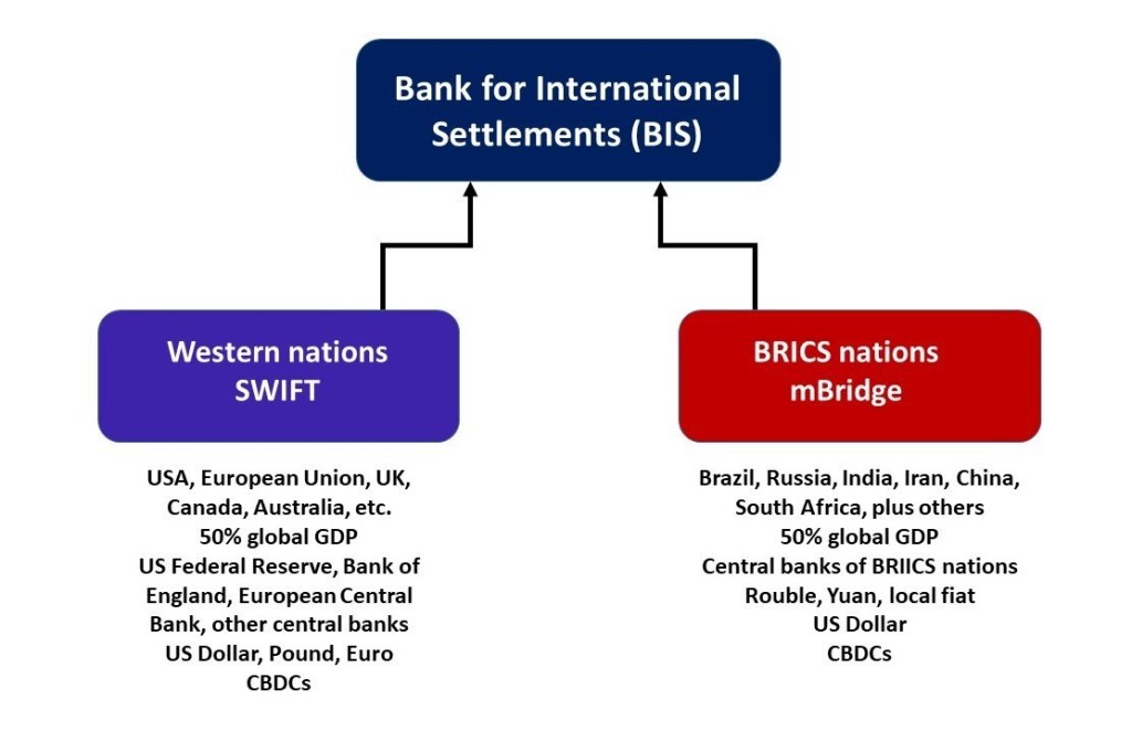 I don’t see how, considering the BRICS nations have been developing their new international financial messaging system, mBridge, with and under control of the BIS. The BIS is integrally involved in its development.