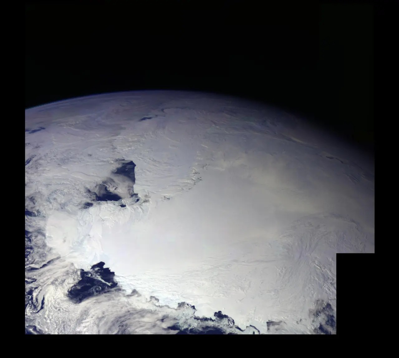 Above is a composite picture of the entire Antarctic continent assembled from pictures taken by NASA’s Galileo space probe in 1990. It shows no evidence of a giant ice wall preventing explorers from reaching the South Pole as alleged by many in the Flat Earth believing asylum. But Flat Earthers also say nothing NASA produces can be trusted.