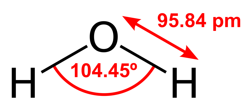 As a result the bond angle is slightly reduced to 104.45°. Because of this fact and the imbalance of the electron cloud spatially more on one side of the oxygen atom than on the other, the water molecule has some special properties.