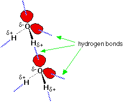 The result is a weak attractive dipole-dipole force called hydrogen bonding. It is responsible for the surface tension of liquid water.