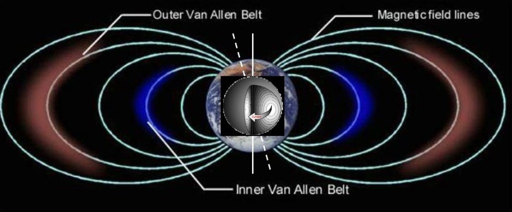 Besides the correct model for the earth’s magnetic field is free decay of the electric current circulating in the liquid iron-nickel outer core. The rotation axis of that electric current is not aligned with the planetary spin axis. Therefore the magnetic poles are offset from the geographical poles by about 10 degrees which varies over time. That misalignment could be evidence of the earth changes in the great deluge 4,500 years ago. Slow misalignment continues to this day.
