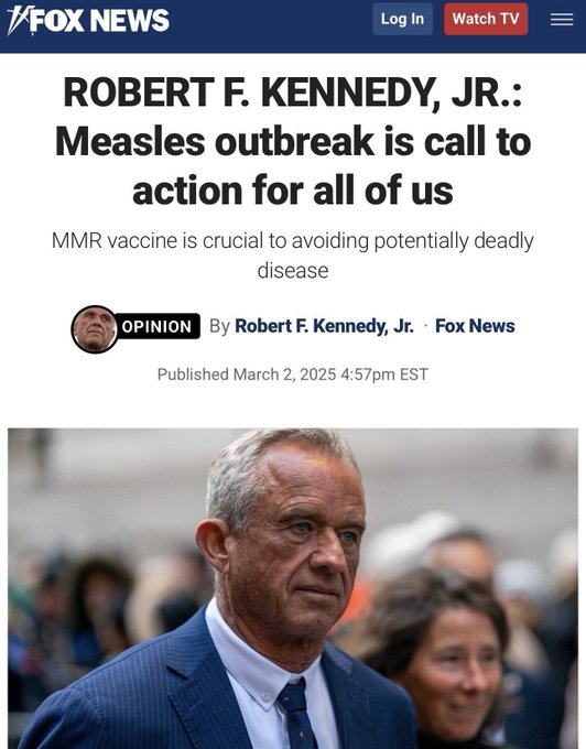 RFK Jr. is pushing the toxic MMR vaccine for the so-called “measles outbreak,” despite previously stating it causes autism (it does). He is a complete fraud.