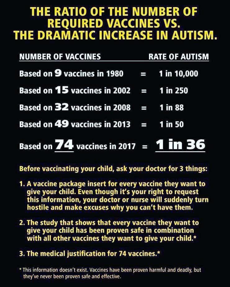When I posted this image above on social media of the development of autism over time as more and more vaccines are given to children in the childhood schedule I got several people repeating the big Pharma talking points: “correlation is not causation” or “more testing is being done and hence more autism discovered” or “the studies have been done and the science is settled”.