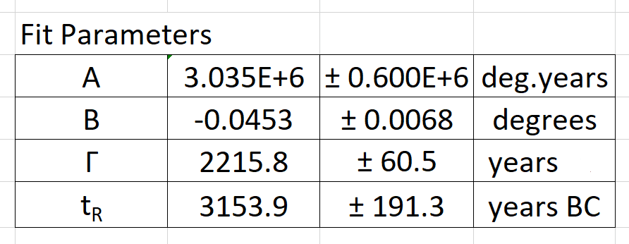 And Dodwell’s could not have fudged that data. For one thing he made no reference to any type of Lorentzian curve fit, but used a Log sine curve for his analysis. His model was very different because as I believe he was led by an effort to get the year of the Flood to align to Bishop Ussher’s chronology.