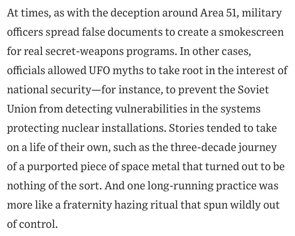 U.S. military fabricated evidence of alien technology and allowed rumors to fester to cover up real secret-weapons programs
