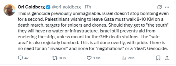 “The government is racing ahead for Gaza to be wiped out. …. All of Gaza will be Jewish”