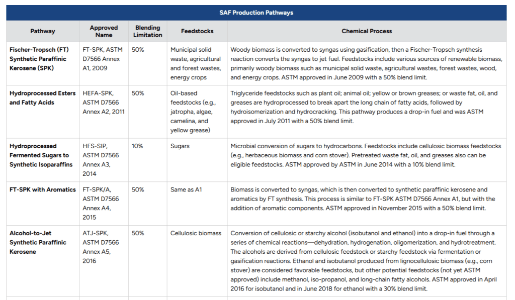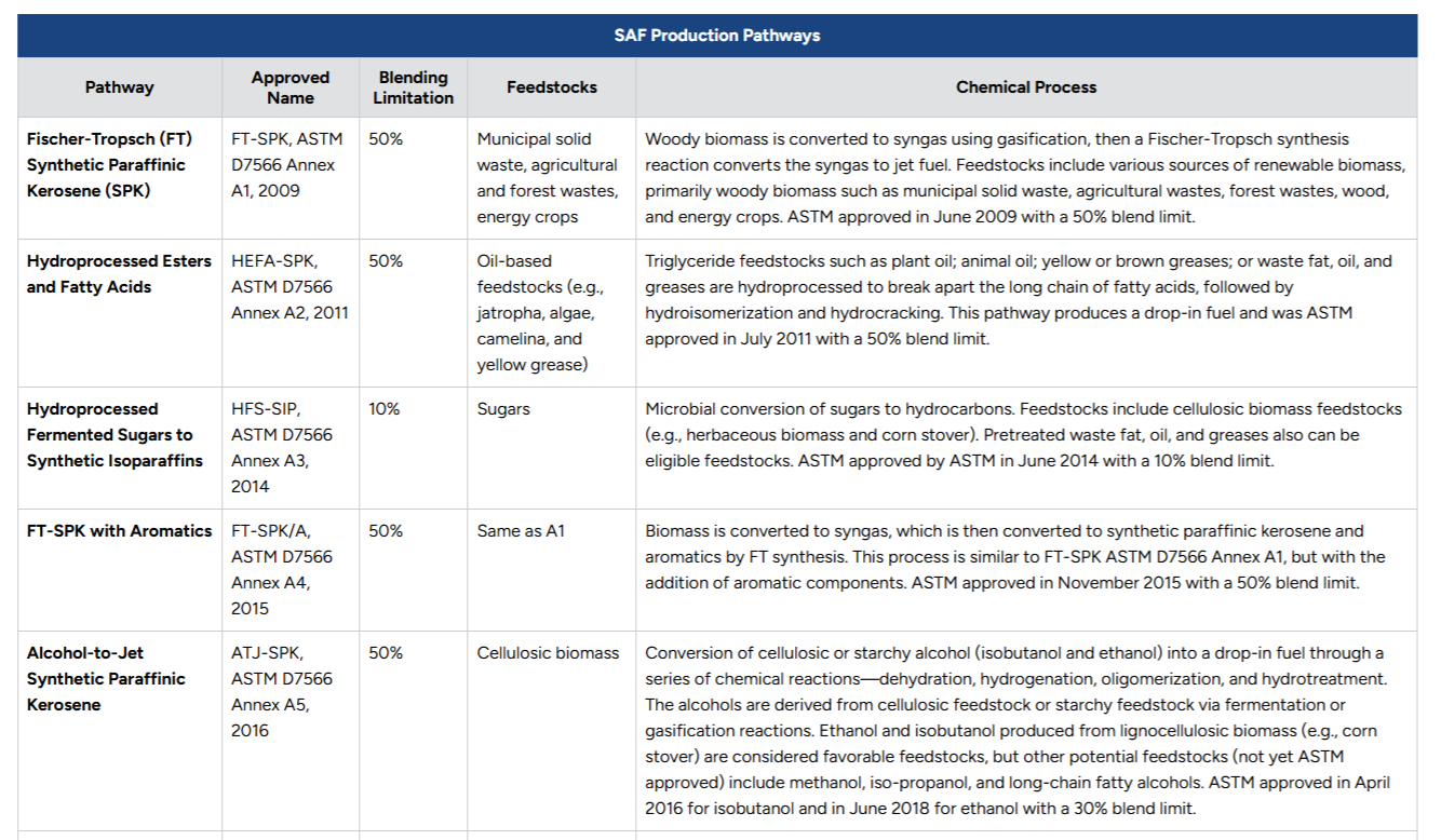 Have a look at the Production Pathways for the SAF at biofuels facilities. But nowhere in those tables does it give a net CO2 budget that tells you how much CO2 is produced when manufacturing the SAF from the various feedstocks. Oils are used and must be extracted from some source. How can that be done? By heating the material in some form. Or alcohol is extracted from starches and sugars. Energy is needed no matter what the process. When energy is used CO2 is always released.