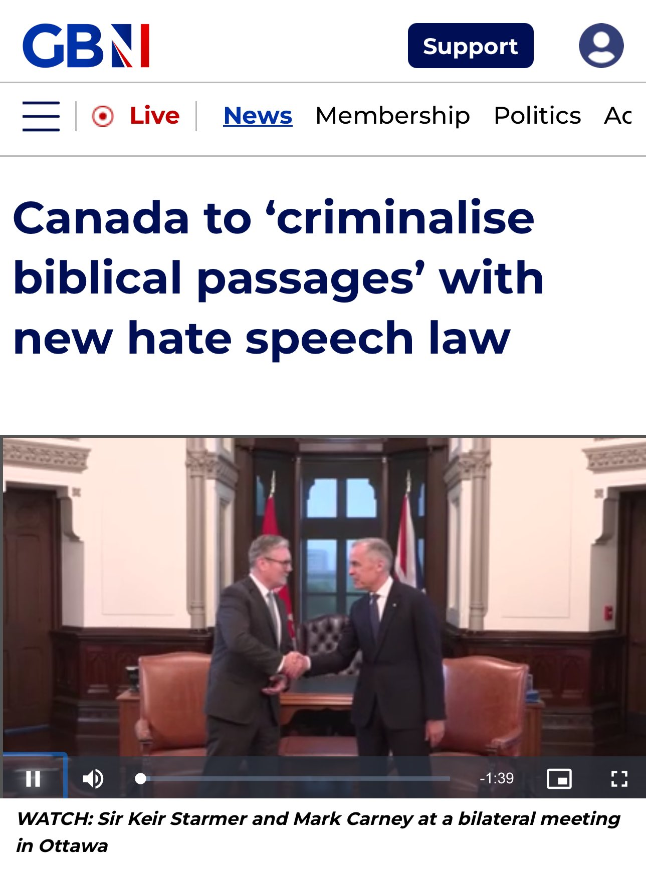 Prime Minister of Canada, Mark Carney, has just fast tracked a proposed law to make it illegal to read certain parts of the Bible. This is one element of the same World Economic Forum (WEF) agenda being introduced across the West, into the once Christian countries, but no longer.