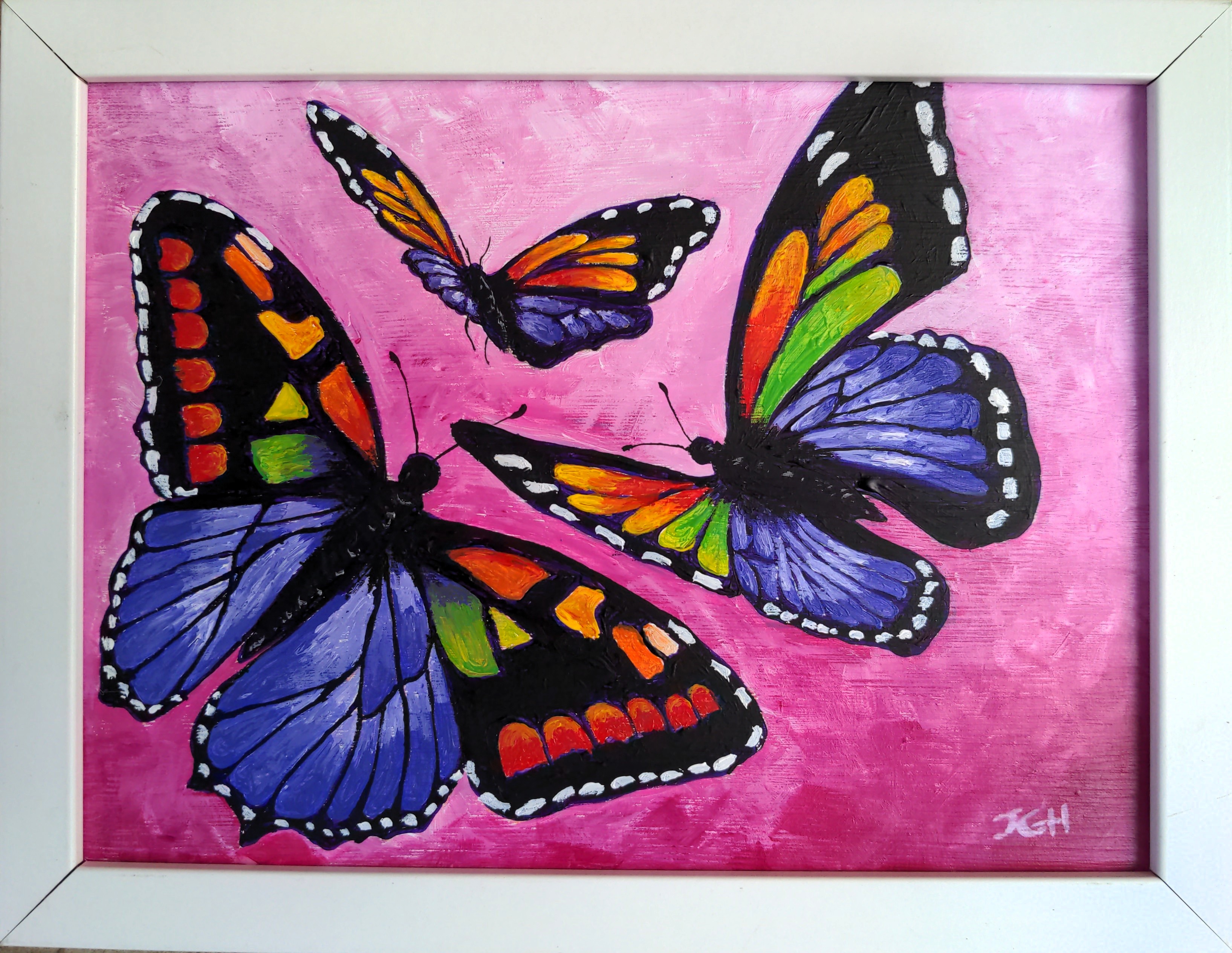 FOR SALE: Coloured Butterflies, 35 x 28 cm (excl. frame), acrylics on board, framed, $175, 2026FOR SALE: Monarch 3, 25 x 20 cm (excl. frame), oils on board, framed, $50, 2026SOLD: Colourful Butterfly, 25 x 20 cm (excl. frame), acrylics on board, 2026FOR SALE: 5 Coloured Butterflies, 35 x 28 cm (excl. frame), acrylics on board, framed, $175, 2026FOR SALE: Very Colourful Butterflies, 24 x 18 cm (excl. frame), acrylics on board, framed, $50, 2026