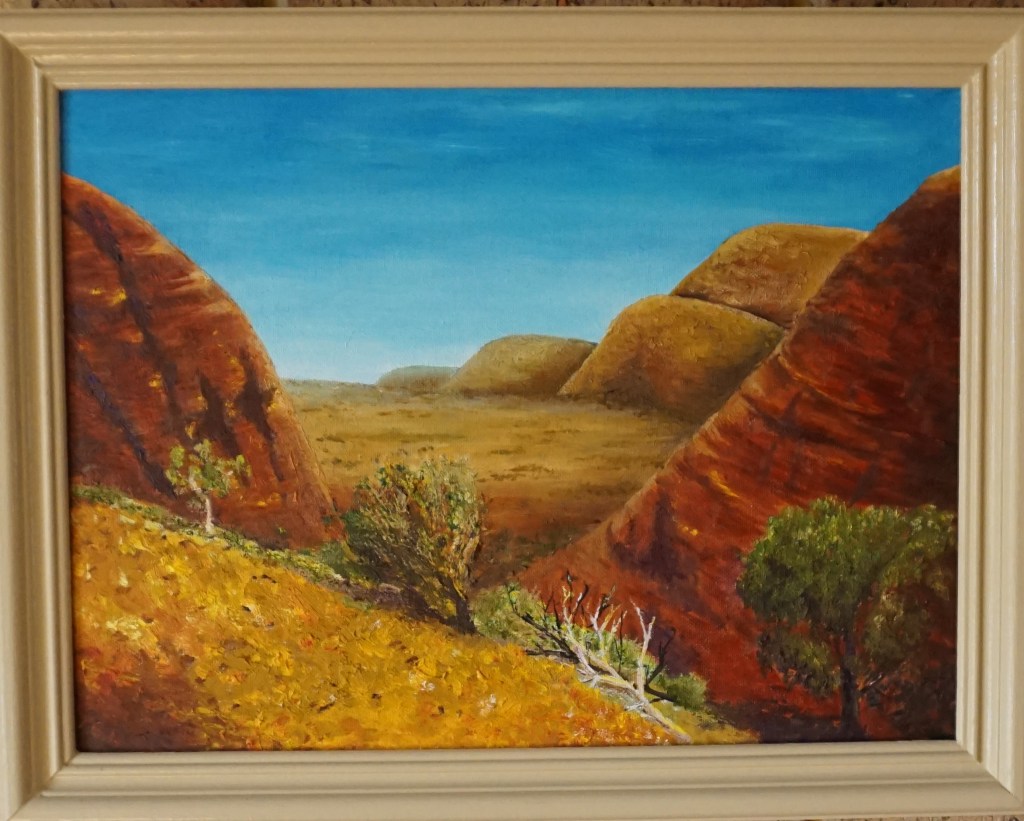 SOLD Sunset over Uluru: 90 cm x 60 cm. Oil on canvas, 2017.SOLD After the bush fire: 40 cm x 30 cm. Inspired by scenes I saw as a child in the Manjimup/Pemberton district. Oil on canvas, 2017. FOR SALE The valley: 40 cm x 30 cm. Oil on canvas, 2017. Unframed $120SOLD Emerald lake: 50 cm x 40 cm. Oil on canvas, 2017. SOLD: River gums in fog: 75 cm x 60 cm. Oil on canvas, 2017.FOR SALE: The old quarry: 90 cm x 60 cm. After a 44 year hiatus from oil painting this was the first painting I did, painted in January 2017. Many years ago I took a photo of the old quarry where I’d take my young children to play. I thought one day I’ll start painting again and it will be this one. Oil on canvas, 2017. Framed $350SOLD Sea gull in approaching storm: 30 cm x 40 cm, oil on board, 2017. SOLD Kata Tjuta: 40 cm x 30 cm, oil on board, 2017. SOLD Blue sunset: 30 cm x 40 cm, oil on board, 2017. SOLD Sunset on fire, 30 cm x 40 cm, oil on board, 2017. SOLD Sunset reflection clouds: 40 cm x 30 cm, oil on board, 2017. SOLD: Rocky beach: 50 cm x 40 cm, oil on canvas, 2017.FOR SALE Bungle Bungles in the Kimberleys W. Australia: 30 cm x 40 cm, oil on board, 2017. Framed $50SOLD: Morning breaks (medium): 30 cm x 40 cm, oil on canvas.FOR SALE Wind blown palms: A pair of paintings, each is 30 cm x 40 cm, oil on canvas, 2017. Unframed $150 (for the pair) + p&p.SOLD Purple Sunset Beach: 40 cm x 30 cm, oil on canvas, 2017.SOLD Morning breaks (large): 50 cm x 70 cm, oil on canvas, 2017.